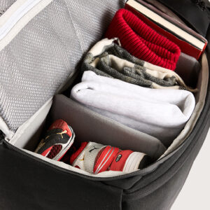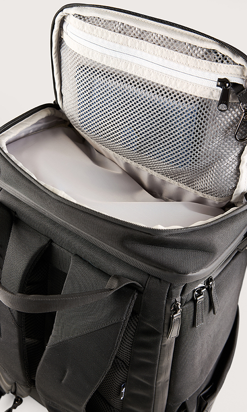 Ryggsäcken är mycket resevänlig och godkänd som handbagage hos de flesta flygbolag. Den har öppning både från toppen och sidan, och med de flyttbara och avtagbara skiljeväggarna kan du anpassa och organisera innehållet precis som du vill, det finns även ett vadderat laptopfack Storlek 30x22x54 cm och rymmer 30 liter.